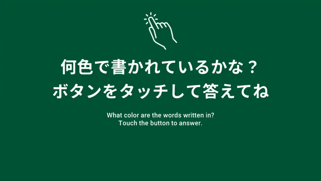 人は文字を読もうと意識していなくても、知っている単語であれば、ことばを目にした瞬間、脳内で自動的に文字の認識や意味の処理を行います。そのため、単語の意味と文字の色が異なる場合には、同じ場合と比べて文字の色を言うのが遅れます。これは、単語の意味情報と文字の色情報の処理が干渉するために生じる現象で、ストループ効果と呼ばれています。