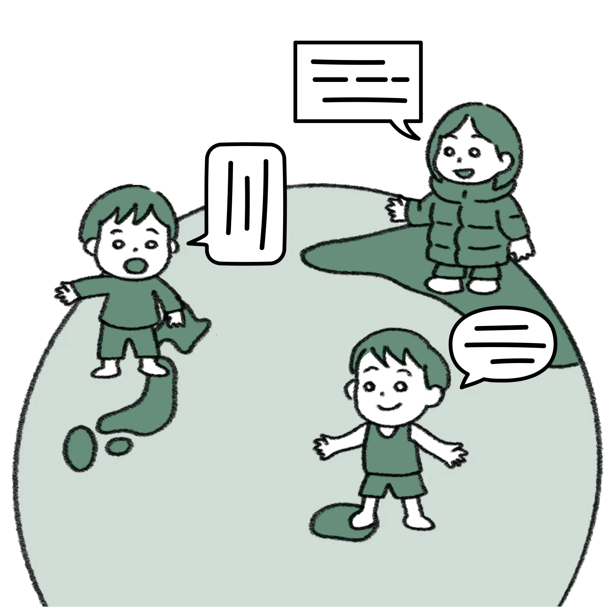まず、個人のレベルでは、話し相手や状況に応じてさまざまな表現を使い分けています。話者ひとりだけでも、さまざまなことばを持っているわけです。さらに、地域や社会など、グループごとに見られる特徴もあります。少しずつ、違う変種を使う個人が集まり、さらにグループが集まって、一つの言語を共有する集団はできています。
