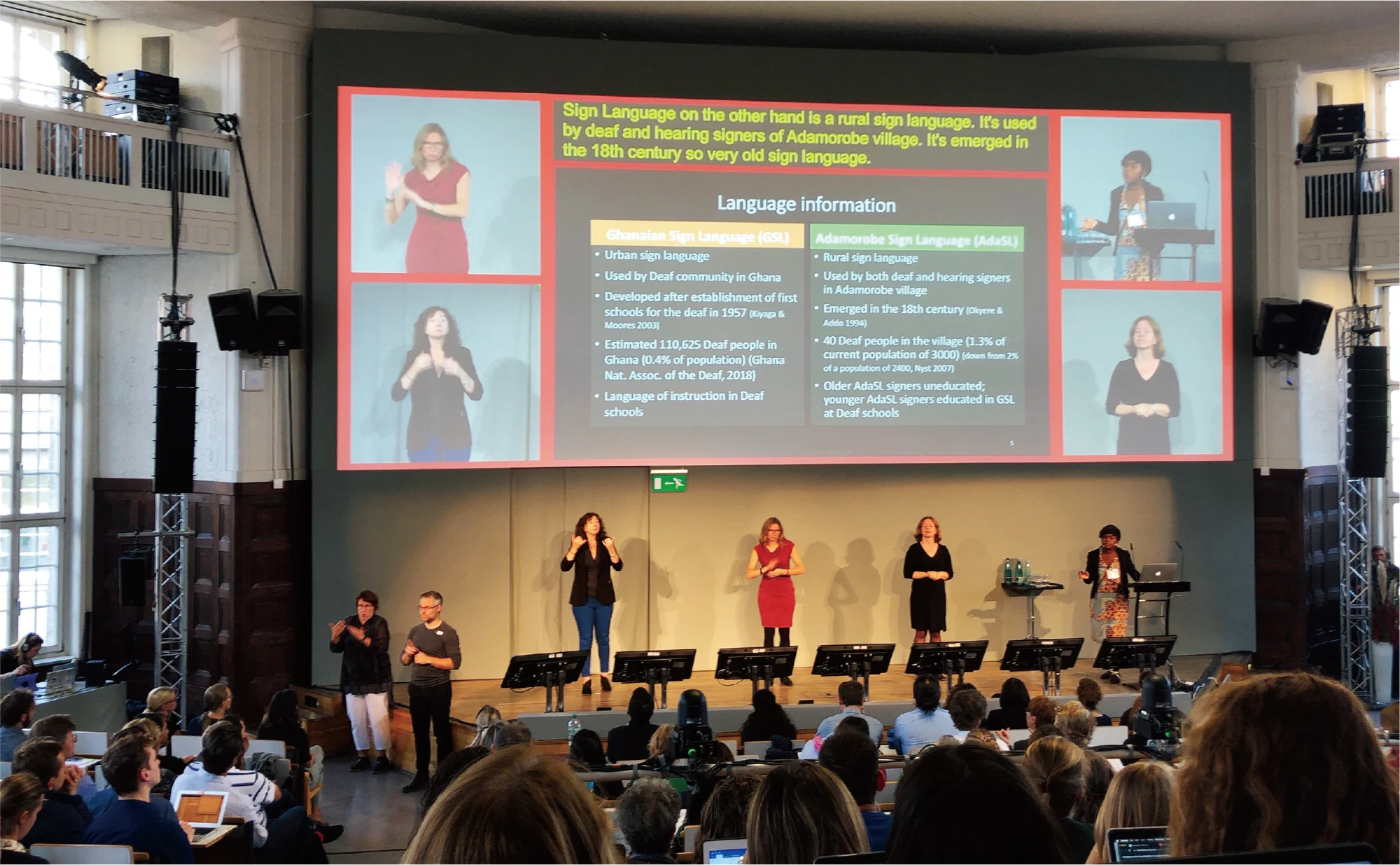 現在では、初等教育から手話言語を使うことで言語力が伸びることがわかっています。アメリカのギャローデット大学のように、手話で教育を受け研究ができる高等機関には、世界各国からろう聴問わず、研究者が集まります。言語学の分野でも、手話が研究対象に積極的に組み込まれるようになってきています。