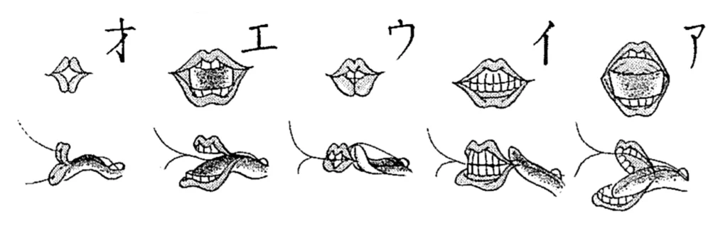 The mouth shape of “a” “i” “u” “e” “o”. Some people were able to pronounce the sounds to a certain degree, but it was very difficult and required a great deal of effort, and it was not for everyone.