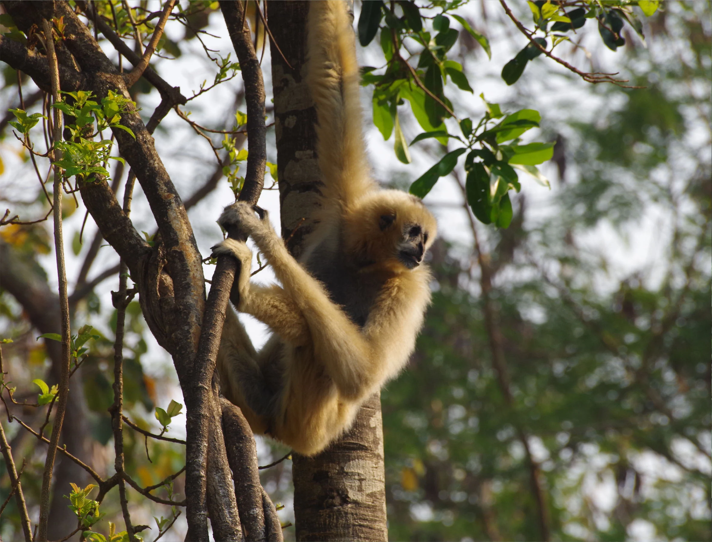 タイに生息するボウシテナガザル。多様な種が東南アジアに適応放散し、 歌の旋律が種に応じて大きく異なる。