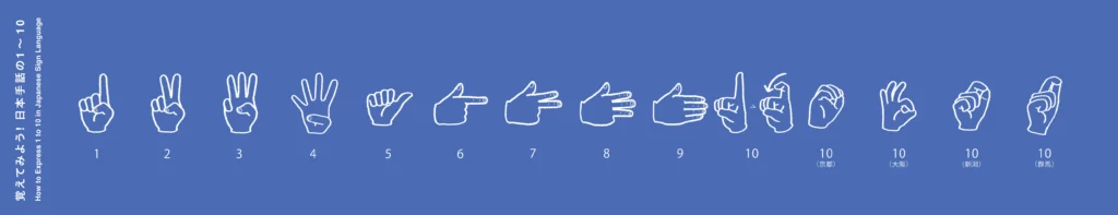 手指日本語は、日本語をそのまま視覚表現に置き換えたものです。日本手話の単語や、日本語を発音するときの口の形を使って表現します。