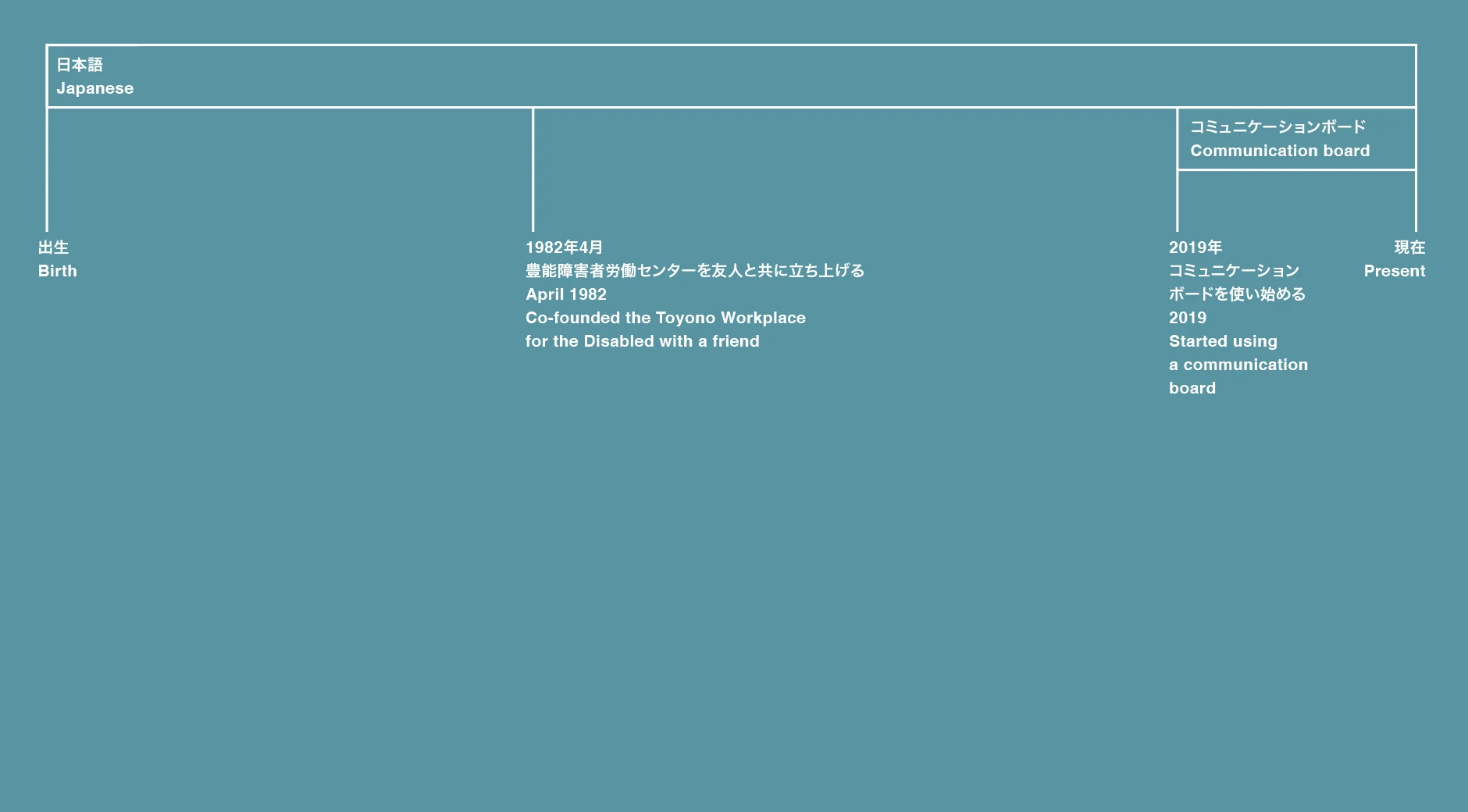 I have congenital cerebral palsy. I attended a school for the disabled from elementary to high school. After graduation, I started a business with 4 “able-bodied” and 2 disabled colleagues. I live on my own with the help of designated helpers. About 3 years ago, I started to find speaking becoming more difficult and started to use a communication board to have conversations.