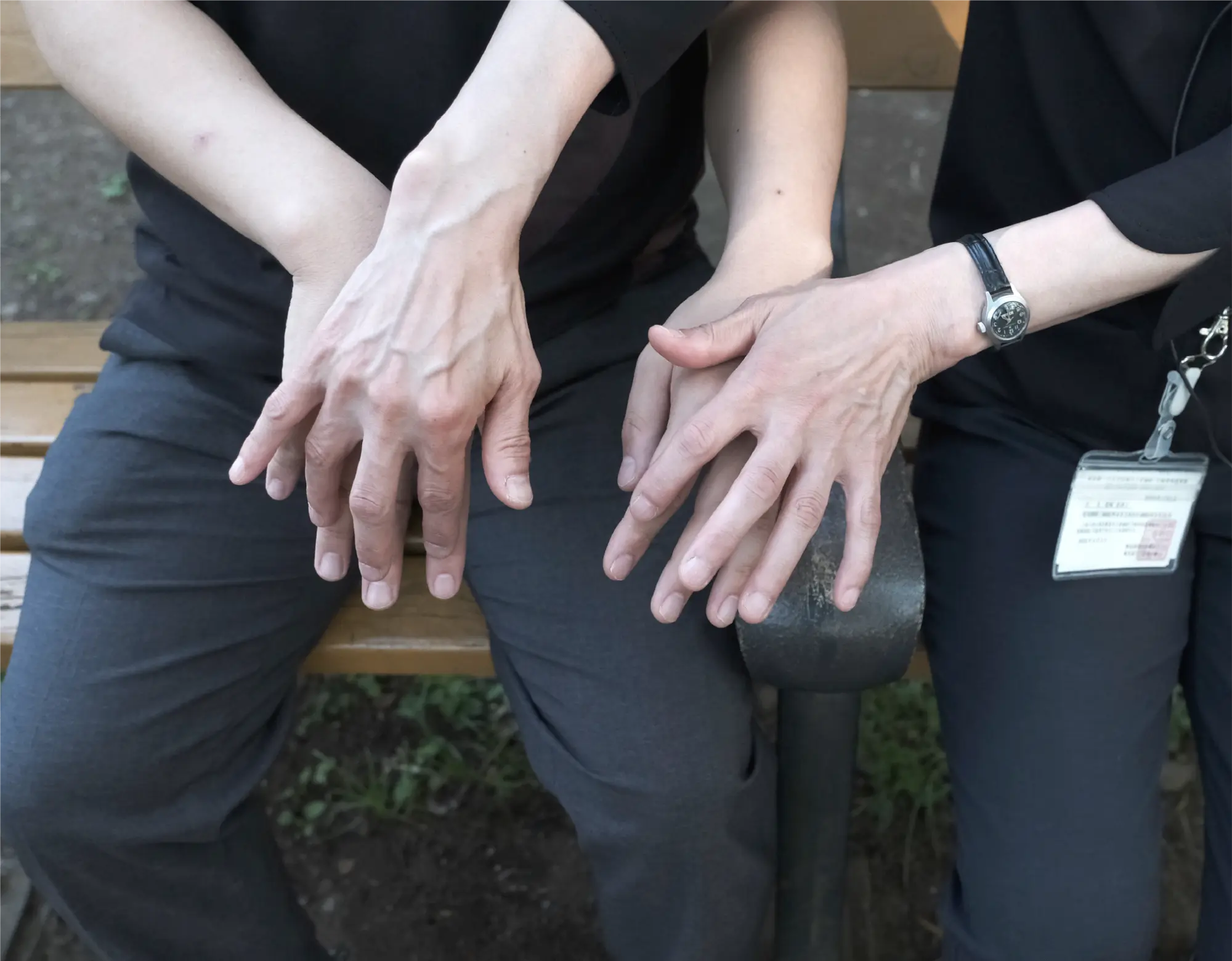 • 目が見えず耳が聴こえない場合には、触ることでコトバを使います。触手話は、手で触れる手話で、見ることを前提とした手話とは異なる特徴があります。また、日本で独自に使われているものとして、指点字があります。点字タイプライターの配置を人の指に当てはめ、指と指を重ねて会話をします。
